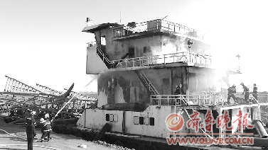 本报11月9日讯(记者 李金金 通讯员 郑永俊) 11月9日上午10时许,广利港东门东20华里处一大型船只着火,该船共三层,二、三层火势迅猛,无人员被困。东营公安消防支队开发区中队消防官兵经过半个小时的紧急救援,将大会扑灭,起火原因系员工在切割金属时,溅落的火星引燃附近的泡沫所致。