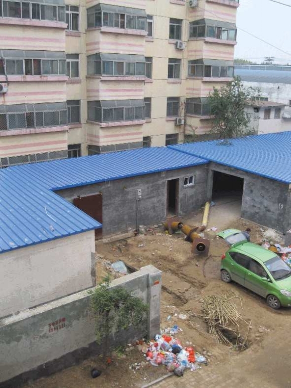 东方家园小区物业负责人李先生表示,小区供暖量去年冬天不达标,今年迫于业主压力不得不加盖这个换热站。由于规划部门审批时间太长,无奈之下才在手续没办下来的情况下施工。