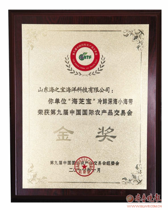11月1日,第九届中国国际农产品交易会在四川成都世纪城新国际会展中心成功落幕,大会奖项花落各家,其中,山东海之宝海洋科技有限公司参展的海芝宝深海小海带荣获金奖,成为此次大会的最大亮点,这也是全国海藻产业唯一获此最高奖项的生产企业。