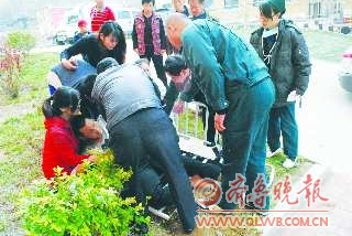斯女士一声疾呼,众人迅速跑到楼下,发现佟先生趴在楼前草坪上,额头有磕破出血,右腿蜷曲,正在不住地叫疼。大家帮佟先生翻转身体,佟先生说头上伤感觉不重,就是右腿生疼,“大腿根疼得都不敢动了。”40号楼居民闻讯后也都赶到现场帮忙,有居民拨打了120急救电话求助。