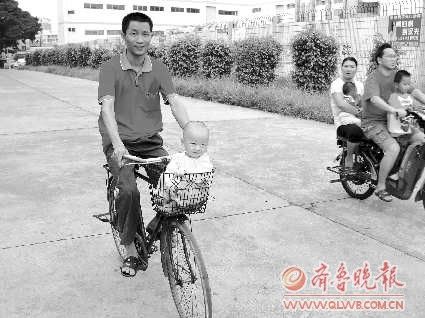 作品描述:这家长把小孩放在车筐中,要注意安全了!