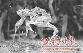 作品描述:一只青蛙从水中突然蹦出,水花四溅,正所谓。
