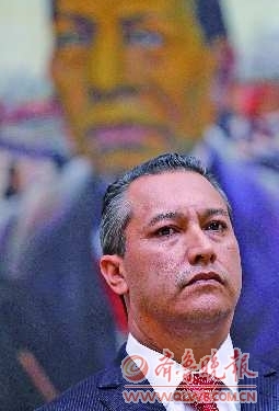 墨西哥内政部长弗朗西斯科·布莱克·莫拉(左图)乘坐的一架直升机于墨西哥当地时间11日上午11时许(北京时间12日1时许)在墨西哥城南部坠毁,包括内政部长在内的机上8人全部遇难。墨西哥总统卡尔德龙当日宣布,因内政部长空难取消出席APEC会议。上图为救援人员在坠机现场。 新华/法新