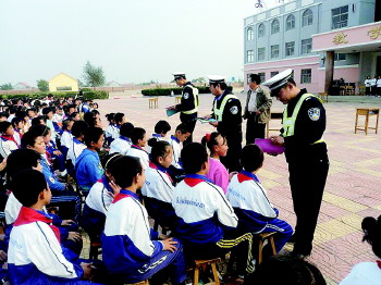 11月7日,河口交警大队走进六和中学进行宣传教育活动。民警结合中小学生活动特点为他们讲解了横穿公路、并排骑车、嬉戏打闹的危害性,并教育学生如何安全骑车、如何保障自己生命安全。 本报通讯员 张景霞 周秀成 本报记者 段学虎 摄影报道