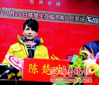 26日上午,歌手陈楚生应济南人民商场之邀,助阵商场“衣呼百应”的活动。在简短的媒体见面会上,陈楚生坦承,自己不是专业演员,所以演技并不是很好,但没想到新专辑出演MV竟然获得大家认可,不过他自己目前并没有进军影视圈的计划。 本报记者 任磊磊 摄影报道