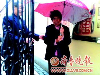 | 老人一心想回家,常站在救助站门口盼望家人来接她。 记者 李兆辉 摄。 |