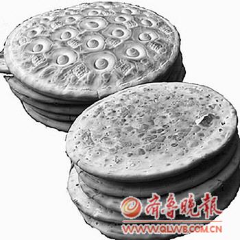 说起费县的方城锅饼,在当地可谓家喻户晓的美食。它用料上乘,做工独特,入口筋道,满嘴喷香。 然而,打锅饼却是个力气活,非身体强壮、耐性十足的男子莫属。早年,凡打锅饼的人家,主妇首先把小麦淘净。晒到九成干,用人力或套上牲口上石磨碾细。然后使马尾箩,箩出头等白面。 翌日,男人凌晨即起,先和面后生炉子,于是,大半天的活儿便拉开序幕。 做锅饼不能用死面(没发酵),但也不可全用发面。有经验的人会在头一天晚上临睡前,用温水在瓷缸里先把面头(老面引子)发上。早晨接面时,按每个锅饼六七两比例,一斤干面使三两水将面和好。而后五斤一个剂子,放在面案上用杠子(一米见长,可把粗的木杠以铁链衔接在案板上)反复碾压。要想筋道好吃,每块面必须压上四五百下才行。 最后揉成团,擀到厚约一寸,跟锅底深度(平锅)相仿时,双手重叠搓出匀称方格花。之后,用指尖沾点儿花生油稍微一抹。掌心朝上托起面坯来个漂亮的空中翻,正好把有花的一面贴在锅底上。接着,再拿根筷子天女散花般戳些小孔。这么一来,锅饼透气熟得快。 烙锅饼要文火,这样受热均匀,故师傅们会找人用铁板做个带支架的圆盘,上面摊层河沙,放炉膛里好隔热。至于锅盖也颇有讲究,要以纸板作底层,再加两个秫秸盖顶钉在一起用。一般只要火力得当,一个锅饼半小时就能熟透。其中二十六七分钟烙有花的一面,剩下的时间翻过来用木块压着转两圈,再盖上盖子大点儿火,即可出锅。 新锅饼趁热吃最好,它外脆里暄,老少皆宜。平时,人们不奢望常吃,只是时间长了,想换换口味,或家中来亲戚朋友需好好招待时,才买上几斤。若找人打墙盖屋什么的用量一多,要先和店主联系好,届时方能满足供应。 从前,由于销量有限,打锅饼又是个繁重的体力活,因此一位师傅只能看一口锅。如今,面粉是现成的,劈柴已被蜂窝煤代替,一人能看三口锅。 心中有数的店主,一般都是当天打当天卖,他们宁可缺货,亦不多做。而买家不然,就算一顿吃不完,下回馏着吃也挺好。另外,还有个妙法:用葱花姜末炝炝锅,倒上清水烧开下点儿面混混汤,把剩下的锅饼切成片,放在沸腾的锅里,再撒上把青菜叶什么的烩着吃。 饭盛在碗里,喝一口稀的,挟一块饼放嘴里嚼嚼硬乎的,那感觉真叫满口生津,美味无穷!