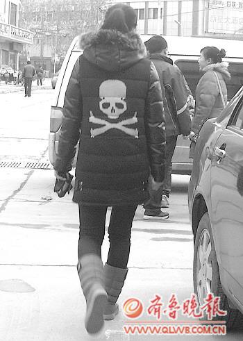 作品描述:一位女子身着类似毒品标志的外衣。拍摄时间:12月8日
