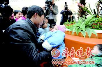 |  | 6日,郭安伦一看到小雪就抱到了怀中。 本报记者 王媛 摄 |