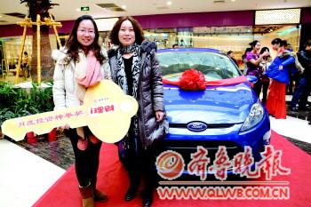 | 图为严女士和女儿领到了汽车大奖的钥匙。 |