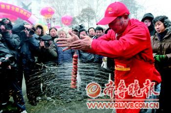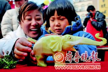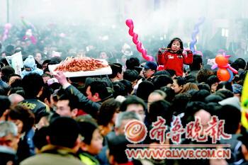 | ◤一家糖球店铺老板现场表演“雪里红”聚集人气。 本报记者 杨宁 摄 |  | ▲2011年青岛萝卜会现场。(资料片)