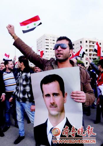 | 反对派游行反对巴沙尔。(资料片) |  | 支持者集会力挺巴沙尔。(资料片) |