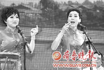| 罗晓静(右)、闫雯表演山东大鼓《打井记》。郭建正 摄 |