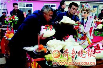 3月17日,渔民们在黄龙庄祭海节现场摆设祭品,开展传承了五百余年的祭海民俗,包括民间祭祀暨三牲供品展、仿古祭海典礼、开船仪式、主题乐舞晚会、非物质文化遗产展演等丰富多彩的内容。