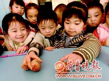20日,快乐起航幼儿园的小朋友们在做“立蛋”游戏。据了解,当日是农历二十四节气中的“春分”。“春分到、蛋儿俏”,“春分立蛋”的传统起源于4000年前,每年此时,很多地方都举行“立蛋”的游戏庆祝春天的到来。 通讯员 臧琳 记者 李泊静 摄