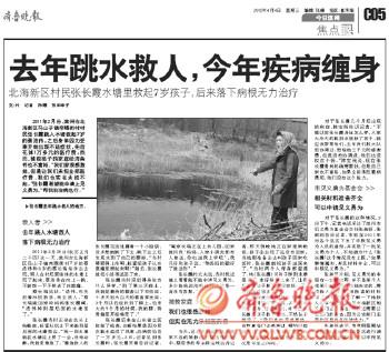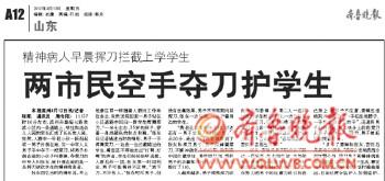 本报5月22日讯(记者 王晓霜 通讯员 王磊) 22日上午,滨州市见义勇为表彰奖励暨先进事迹报告会召开,对滨州市2011年以来涌现的31位见义勇为典型进行了表彰奖励,并号召全市向见义勇为先进分子学习。 22日上午,中共滨州市委政法委、滨州市社会管理综合治理委员会、滨州市见义勇为基金会决定授予张新、杨景田、张彬彬、陈子刚、宋乐乐、刘振国、杨永民、王光生、张元星、张长霞、徐燕东11名同志“滨州市见义勇为先进分子”荣誉称号;授予王世龙、李志杰、张东、姜琳4名同志“滨州市见义勇为好市民”荣誉称号;授予刘传宝、池云峰、窦立成等16名同志“滨州市见义勇为先进工作者”荣誉称号,共奖励17.4万元人民币。 22日受到表彰的31位见义勇为典型中,有为救落入地窖的村民而一氧化碳中毒牺牲张新;有为救人而落下一身疾病的北海新区马山子镇帝赐街村村民张长霞;还有勇敢制止挥菜刀患有精神病男子保护学生的张东、姜琳……他们中最小的只有23岁。 滨州市下一步要在全社会形成学习英雄、崇尚英雄、关爱英雄、争当英雄的浓厚氛围,营造见义勇为事业健康发展的社会氛围,在全市形成互帮互助、见义勇为的社会风尚。 姜琳、张东空手夺刀护学生 >> “这是我们应该做的” 22日,姜琳、张东被滨州市评为“见义勇为好市民”后,姜琳淡然地告诉记者,“作为小区物业人员,这是我应该做的。”张东是东营市胜利第十五中学的体育教师,他向记者表示,“遇到类似事,每个人都会管的,这也是我一个公民应该做的事情。” 今年4月11日早7时10分左右,渤海七路胜滨小区内,一名30岁左右的男子手提菜刀突然向过往学生挥舞,路过的张东、姜琳迅速将学生挡在身后。两人经过周密配合,最终将男子菜刀夺下将其制服。两人空手夺刀护学生一事在当地传为佳话。(详见本报4月13日A12版) (记者 张凯) 张长霞跳水救人落下一身病 >> 感谢大家的关注和关心 去年2月份,滨州市北海新区马山子镇帝赐街村村民张长霞跳入刺骨的池塘,将同村7岁的蔡浩伟救上岸,身体却落下一身病。经过本报报道(详见本报4月4日C05版)和市民的关心后,22日,张长霞被评为滨州市“见义勇为先进分子”,并获得一万元奖金。 “她有钱治病了。”张长霞的丈夫蔡先生告诉记者,“很感谢你们,如果不是你们报道,这件事情就没人知道了,也没人管了。并不是在意这个奖,只是希望能有人帮帮我们。”蔡先生介绍,目前张长霞仍在服用草药治疗,“最大的希望就是能有医生帮她把病治好。” (记者 张牟幸子 孙珊) 本报作过的相关报道。