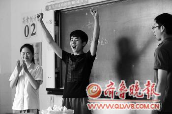 “90后”学生惹哭“80后”老师 “刚哥我们爱你!”4日下午3点多,济南中学高三·10班教室里爆发出一阵呼声。女生们流泪了,男生们鼻子红了,“80后”的男班主任宋卫刚也低头抹起了眼泪……这个班的最后一课上,欢呼声、掌声、笑声、抽泣声接连响起。 学生们先是接连走到讲台上从宋卫刚手里领回自己的毕业证,再给宋卫刚一个拥抱。等到毕业证发放完毕之后,两个学生突然从教室后边拿出早已准备好的蛋糕送到讲台前,缓缓的音乐响起来,宋卫刚的眼眶红了。 “无论以后大家干什么,希望大家能够记住我们这么多人曾经一起奋斗过,希望大家记住难忘的时光和你一起走过的人。高考不是一个结束,而是新的一个开始。以后无论遇到什么困难,刚哥永远支持你!”宋卫刚在讲台上送给全班学生临别赠言,台下哭声一片。 老师和学生们互赠留言后,老师和同学们一人一口分享了蛋糕,最后更是在大家“齐心协力”下直接涂在了宋卫刚脑袋上。 “‘刚哥’是学生给我起的绰号。”1982年出生的班主任宋卫刚说,“我2004年大学毕业,今年是第一年带高三。这届学生从高二开始带,带了两年,我们平常的兴趣爱好差不多,感情很深。” “刚哥就像我们的亲哥。”学生李瑞恒说,“他经常跟我们一起打球,对我们既严厉又照顾。他很幽默,一直让我们保持平和自信的心态来对待高考。” 班里的团支书杨琳说,“最后一课上,宋老师没有跟我们过分强调高考,一直给我们一种温情的力量,让我们默默地坚持下来”。