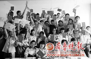 | “我们毕业啦!”6月4日,在济南中学高三·10班的最后一课上,学生们高举红色毕业证书,乐观地去迎接即将到来的考试。 |  | 6月4日,在济南中学高三·10班,两名学生将送给班集体的蛋糕拿上讲台,并和大家一起高喊加油、必胜。 |