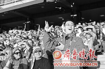 | 本报记者胡建明在南非世界杯现场采访。(资料片) |