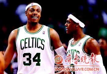 | 凯尔特人队球员皮尔斯(左)与朗多在比赛中。 新华社发 |