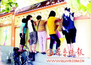 自述:幼儿园庆六一表演,妈妈们攀墙观看。
