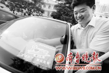 | 爱心车主将“送考爱心车”的牌子安放在车上。 张晓科 摄 |