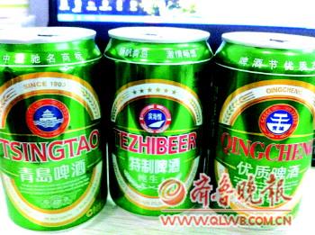 | 山寨啤酒与青岛啤酒做对比。 记者 秦雪丽 摄 |