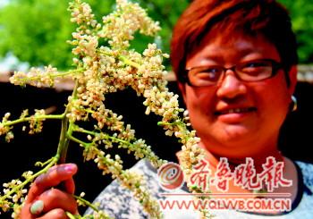 近日,在聊城东昌府区北城办事处辛闸村村民刘玉华家,一棵生长了10多年的香椿树突然开出了花,这让刘玉华一家既兴奋又感到惊奇。香椿树绿色的树冠中,夹杂着一串串白色的小花,每一串都有30厘米长,黄蕊白瓣,十分美丽。据了解,香椿树是一种雌雄异株的落叶乔木,按照正常生长速度,雌性香椿树一般要生长七八年以上,才能开花结果。 本报记者 邹俊美 摄