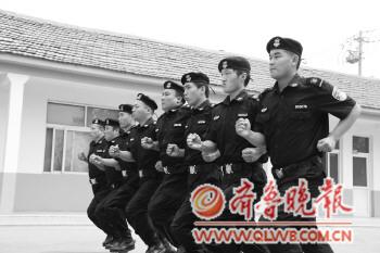 6月3日上午,德城公安分局保安大队百名押运队员在综合训练基地操场,展开了夏季军事大比武活动。图为押运队员在会操比武中。 本报通讯员 李丽丽 摄