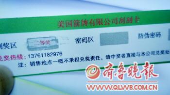 从银座商城买来的口香糖夹着这张中奖卡。 孙婷婷 王乐伟 摄