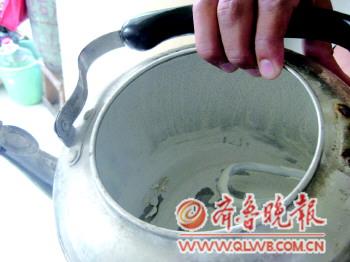 | ▲由于自备井水质不佳,中信小区居民家中的水壶中有厚厚的水垢