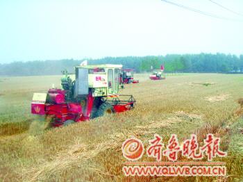 | ▲4日,菏泽夏收正式开始。 本报记者 李贺 摄 |