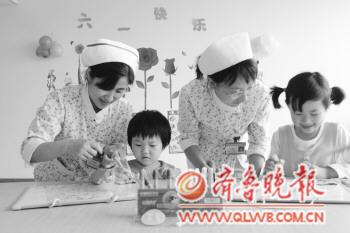 “六一”儿童节是孩子们最期盼的节日,当天,在青岛市胶州中心医院儿科病房里,医护人员为为孩子们送上一份特别的节日礼物。在精心布置的活动室,孩子们兴高采烈地进行绘画比赛,听儿歌,做亲子游戏,度过了一个特殊的节日。