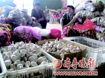 | 4日上午10点,金阳市场的大蒜批发商显得有些清闲。