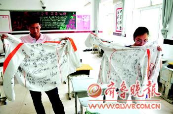 4日,泰山中学高三毕业生离校。校服上签满同学的名字,这校服将和刚走完的高中一起,成为他们人生的回忆,但友谊长存。 本报记者 赵苏炜 摄