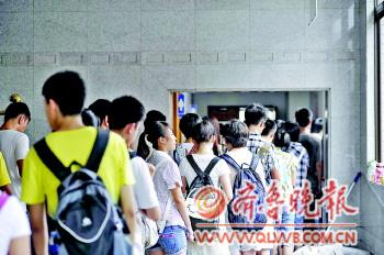 图为7月23日上午,在省图自习室门口排队等待进场的人群。 本报记者 蔡旭超 摄