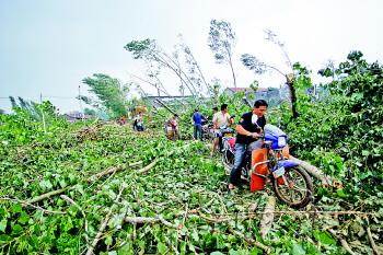本报记者 彭彦伟 “达维”过境携风带雨。自2日晚7点到3日下午,日照市沿海出现了7-8级大风,阵风达到9-10级。日照平均降水量为84.6毫米,最大降水量出现在日照莒县中楼镇,为197.4毫米。 超过十万棵树 被吹歪吹倒 3日上午10点,记者从莒县龙山镇步行前往中楼镇,沿线马路通行受阻,自行车都不能通过。一人多粗的树木被大风连根拔起,横七竖八地躺在马路上。 沿线随处可见村民们伐树通路的场景,“我们早晨五点就开始通路,可倒的树木太多了,道路短时间内根本打通不了。”中楼镇集后村一负责人说。 在莒县寨里河镇牛家沟子村,村支书刘兰美说,他们村有1300余亩种植杨树的山地,“这场风把村里九成以上的树全都刮倒了,有七万多棵。”所有进入该村的路都被树木阻断,“自行车都进不来。”刘兰美说。 在中楼镇卢家军子村,该村村主任卢立绍正带着村民们清理树木,“树木基本都倒了,具体没统计,几万棵是有了。”卢立绍说。在记者沿线采访的七个村庄中,所有的村八成以上的树木都被大风刮倒。 相对于树木,让村民们更加担心的是地里的庄稼。“今年玉米基本算是绝产了,这风太大了。”一村民说。 遭遇风灾的还有黄烟,由于之前干旱,今年黄烟烘烤刚刚开始,“正常的话3日正好出今年第一炉黄烟。”刘兰美说。可突然而来的台风,把黄烟全都打倒在地里,“这些烟烘烤以后会发黑,烟的质量基本也完了。” “家里的水 都到我胸口了” 不仅树木和粮食遭灾,岚山区黄墩镇上双疃村一河堤决口。该村东边有一条河,是附近几个村庄排水的必经之地。由于雨势较大,该河的防洪堤被冲开了十米多的口子,“大堤是在凌晨4点左右被冲开的。”该村村支书张守红说。 河堤被冲开后,水势迅速向村里蔓延,八十余户家里进水,上千户居民受灾。 “当时我们家里的水都到我胸口了,水流非常急,根本走不动。”一米七五左右的村民庄新伟说,“当时幸亏村支书带着人用绳子把我拉了上来。” 从凌晨四点开始,村两委成员就带着工具救助村民,“我们也没有专业的救助工具,只能用绳子等把村民往外拉。”张守红说。有个孕妇不方便用绳子拉,坐着洗衣服的大盆从水里逃了出来。 该村村民张守松家有个养猪场,而这场大雨把他家200余头猪冲走了一半左右。记者在张守松家看到,他家所有的房子都已经进水,从退水后的痕迹上记者测量发现,当时的水位在一米二左右。“冰箱都被冲出了十米多。”张守红说。 “当时水来得太突然了,我们一件衣服都没带就跑出去了,现在穿的衣服都是借的。”张守松的女儿说。记者了解到,该村有六七户养殖户的猪被水冲走,“总数有好几百头吧。”张守红说。 抢修河堤的工作一直在进行。“得赶紧弄好了,要不然再下雨可就麻烦了。”站在泥水里的张守红说。
