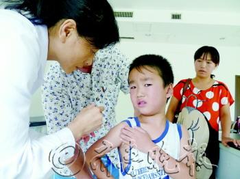 | 一儿童被狗咬在接受狂犬疫苗注射。 本报记者 宋佳 摄 |