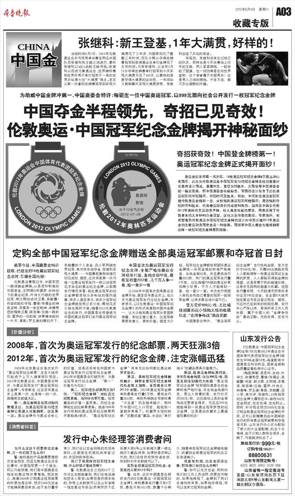 2008年,首次为奥运冠军发行的纪念邮票,两天狂涨3倍2012年,首次为奥运冠军发行的纪念金牌,注定涨幅迅猛