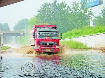 | ◥西客站附近一立交桥下,雨后一天积水仍有50厘米深。
