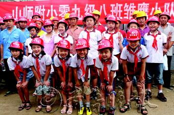 近日,在烈日的炙烤下,保利·大名湖的工地现场却迎来了丝丝的清凉与温情。来自山师附小09级八班“雏鹰小队”的同学们在保利·大名湖项目施工现场进行了“慰问民工”的公益活动。在体验民工叔叔阿姨们艰辛工作的同时,也学会了感恩。 慰问活动开始前,孩子们进行了碰头,利用自己的零花钱在超市为民工们购买了矿泉水、西瓜、毛巾等慰问品,为正在劳动的民工送去一份夏日的清凉。在场民工接过从孩子们手中递上的慰问品,脸上都挂满了幸福欣慰的微笑。随后,孩子们戴上安全帽,进入施工现场,在民工叔叔的指导下,亲身体验了工地劳动的过程,体会了工作的辛劳与不易。炎热的天气里,欢声笑语伴着感动与快乐,回荡在保利·大名湖的施工现场。 这次活动,让孩子在暑假找到了一种别样的体验,很多孩子在这次活动中感受颇深,不少孩子反应说,这次活动让我们亲身体会到了劳动人民的辛苦,体会到了辛福生活的来之不易。一定要更加努力地学习,将来成为一个对国家和社会有用的人。 (楼市记者)