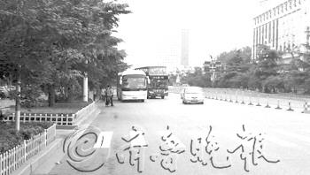 | 公交站牌前班车、私车随意上下人,公交常被延误 | |