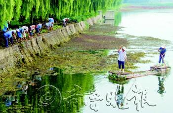 本报热线967066消息(通讯员 李庆盛 孙海宁 记者 赵金阳) 15日,在莱阳蚬河东关大桥,园林处工作人员正在河面上打捞清理野生菱角。野生菱角爆发性增殖,表明蚬河水质变好,但枯萎后产生的氮磷等对水质影响较大。截至目前,园林处已清理菱角1000立方米。工作人员提醒,虽然目前水质好转,但这里的野生菱角也不宜食用。 15日,在莱阳蚬河东关大桥,水面飘浮着大片绿色植物,绵延3000多米,最宽处达50多米。植物叶片呈菱形,上有果实,下有草根。 该市园林处宫主任介绍,他们已经连续三天组织300余人次对蚬河东关大桥段、凤凰大桥段的菱角进行清理打捞,并用网将上游的菱角拦住,防止再次冲到下游产生破坏。截止目前,他们已清理菱角1000立方米。 据介绍,菱角属一年生水生草本植物。野生菱角对生长环境要求苛刻,在污染严重的水体中无法生存,适宜在水质清澈、透光性好、流动性较强、含氧量较高、肥力适中的水体中生长。蚬河是五龙河水系支流之一,从莱阳城区穿城而过。今年5月份,该市对蚬河进行了一次大规模清淤。 菱角早期对水质有净化作用,但枯萎后产生的氮磷等对水质影响较大。据测算,每公顷菱角可吸收水体中50公斤磷、250公斤至400公斤氮。“像这种大规模的野生菱角出现的情况,近几年比较少见。”宫主任说,他们除了将野生菱角打捞出水防止烂在湖中恶化水质外,还栽种了3万余株荷花和睡莲等水生植物来改善水质。 宫主任说,虽然目前水质好转,但是还达不到食用标准,因此这里的野生菱角也不宜食用。