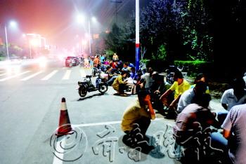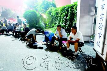 8月15日晚上8时许,记者在东营一小学门口看到,等待16日入学报名的准小学生家长排起了队,长长的队伍蜿蜒十几米。排在第一位的学生家长说,他下午6点多就来了。一位家长说:“知道只要在片区就能报上名,但明天排队也是等,提前来赶个早。” 本报记者 任小杰 李沙娜 摄影报道