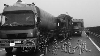 | 东青高速三车连环追尾。 本报通讯员 提供 |