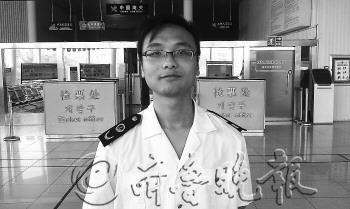 | 郑志鹏在日照国际候船厅。 本报通讯员 聂丽丽 摄 |