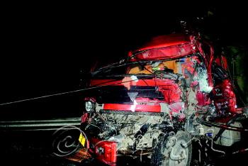 | 大货车驾驶室严重变形。 本报通讯员 赵广勇 摄 |