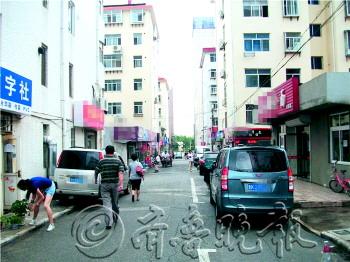 | 15日上午,青岛街两侧都有车辆停放,还不时有车辆通行。 本报记者 冯琳 摄 |