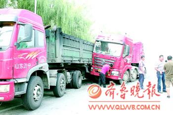 30日下午2时许,在105国道金乡大义段,一辆拉煤的绿色货车停在路边,突然被从后面驶来的红色货车撞上。红色货车的车头从绿色货车的尾部一直挤到“腰部”,车头变形。绿色货车斗一侧被刮坏,煤撒了一地,幸好无人受伤。据现场处理事故的交警介绍,事故原因还在进一步调查中。