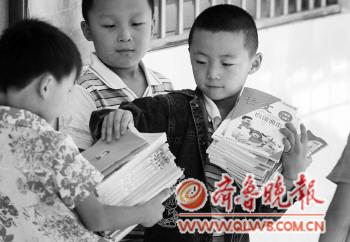 开学第一天,孩子忙着搬新书。  本报记者 李军 摄